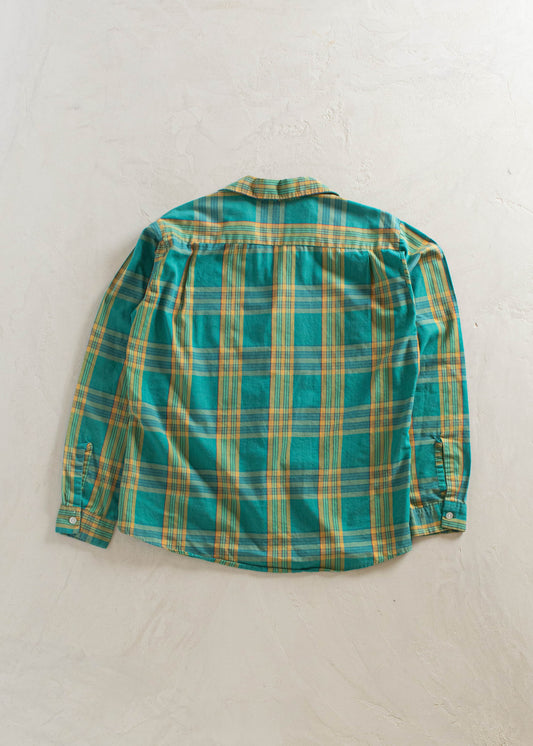 1970s Plaid Pattern Loop Collar Button Up Shirt Size S/M