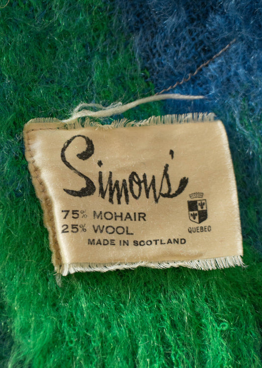 1970s Simons Plaid Pattern Mohair Throw Blanket