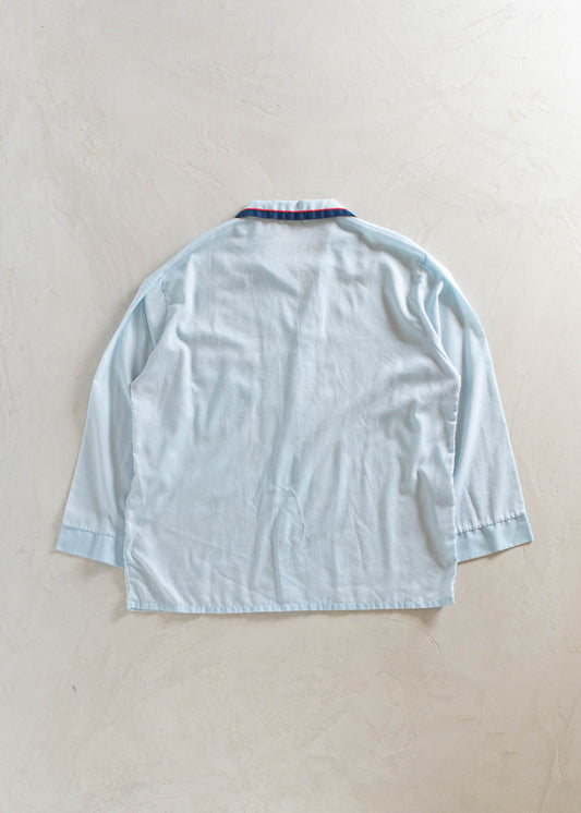 1970s Solid Blue Long Sleeve Button Up Pajama Shirt Size XL/2XL