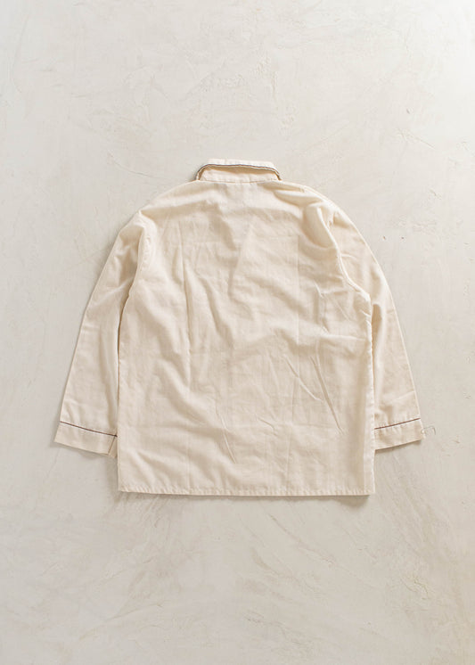 1970s Solid Cream Long Sleeve Button Up Pajama Shirt Size M/L