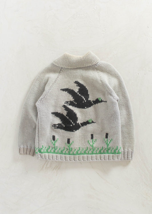 Vintage Duck Pattern Cowichan Style Wool Cardigan Size M/L