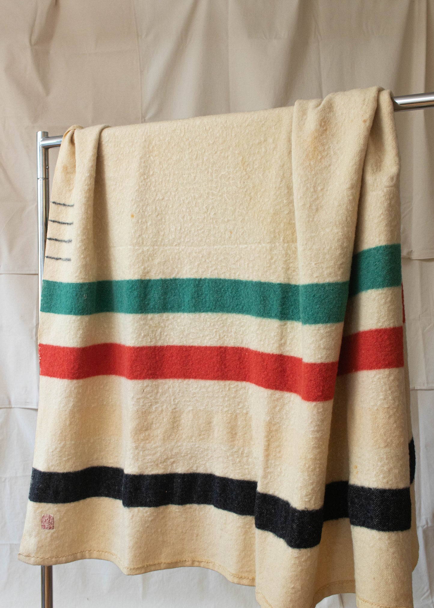 Vintage 1950s Hudson's Bay 4 Point Stripe Pattern Wool Blanket Size Full/Double