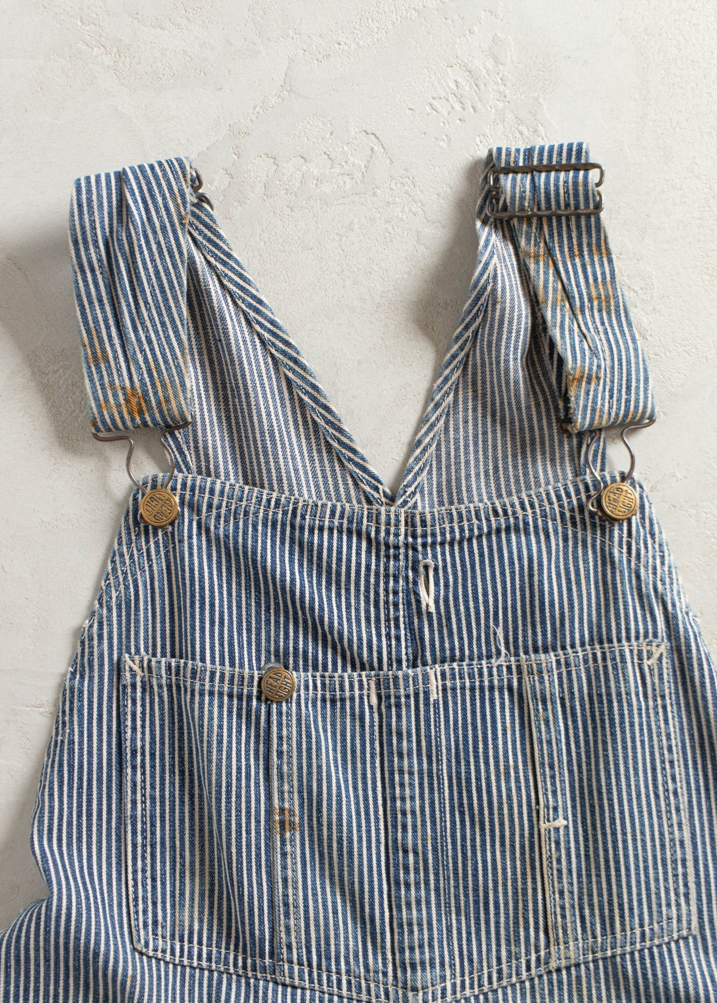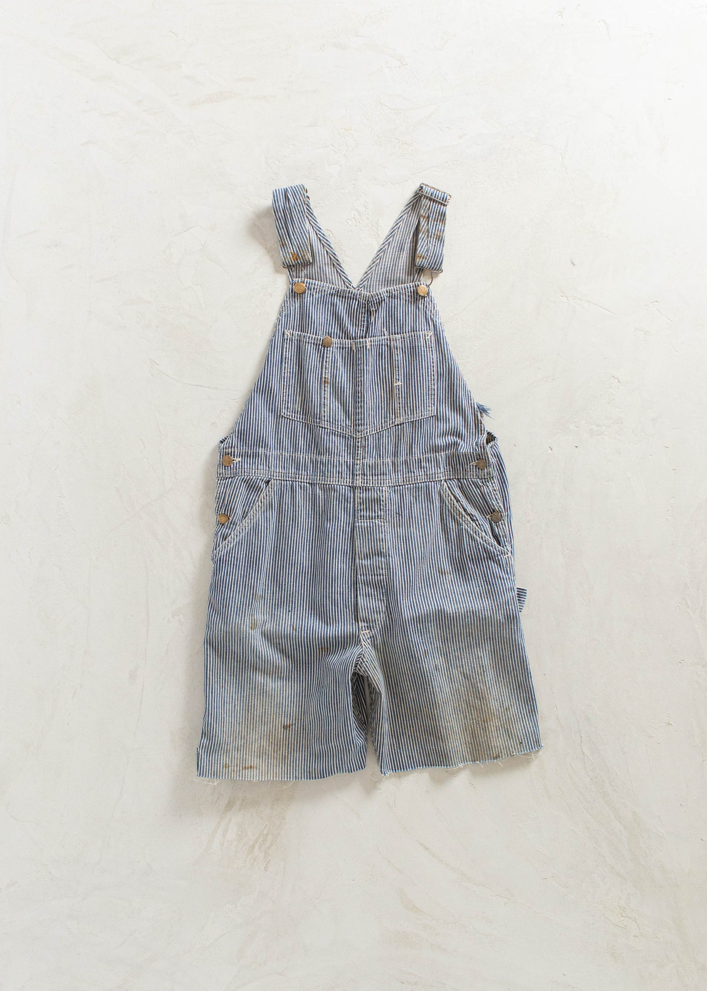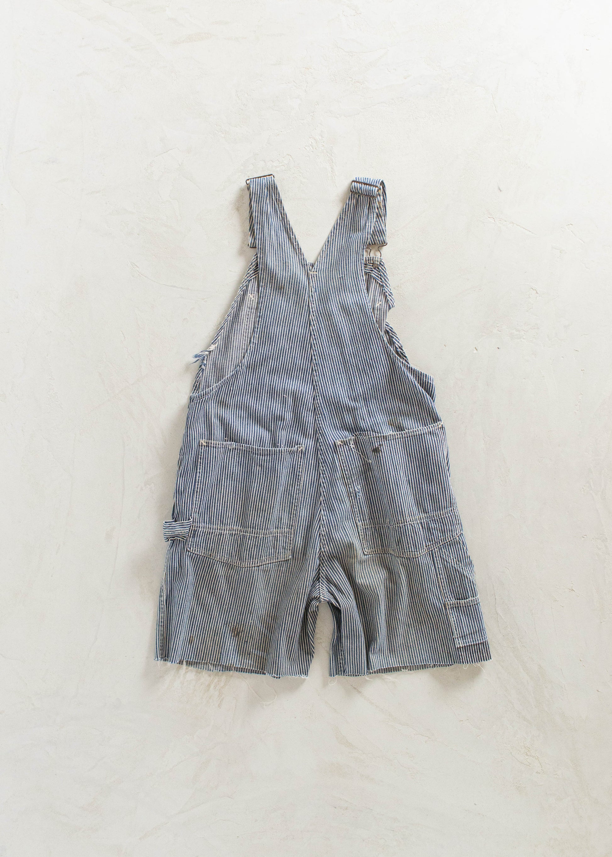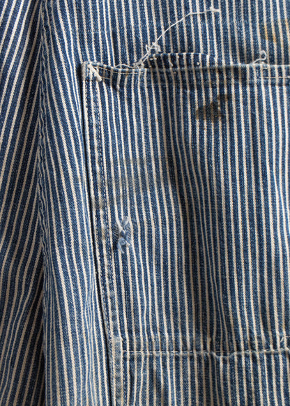 Vintage 1940s Head Light Hickory Stripe Cut Off Overalls Size M/L