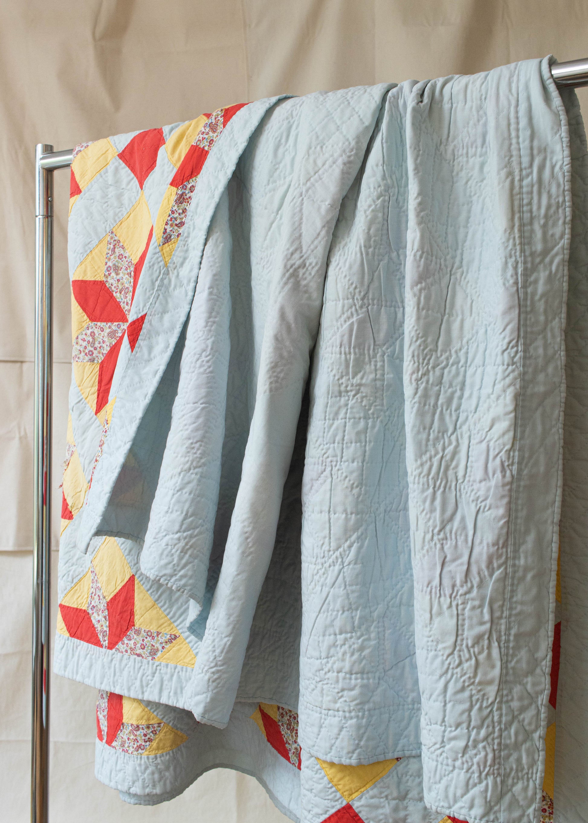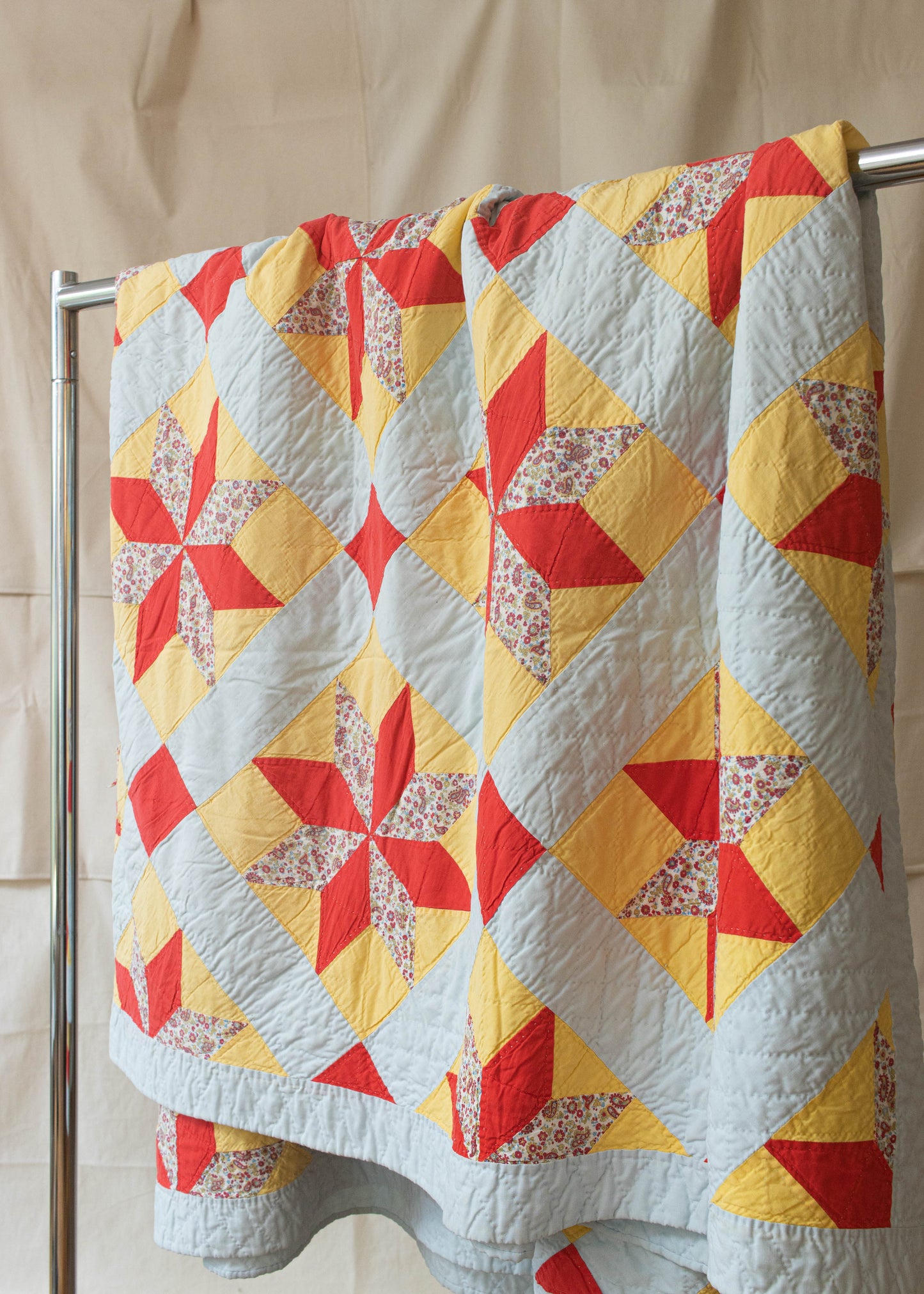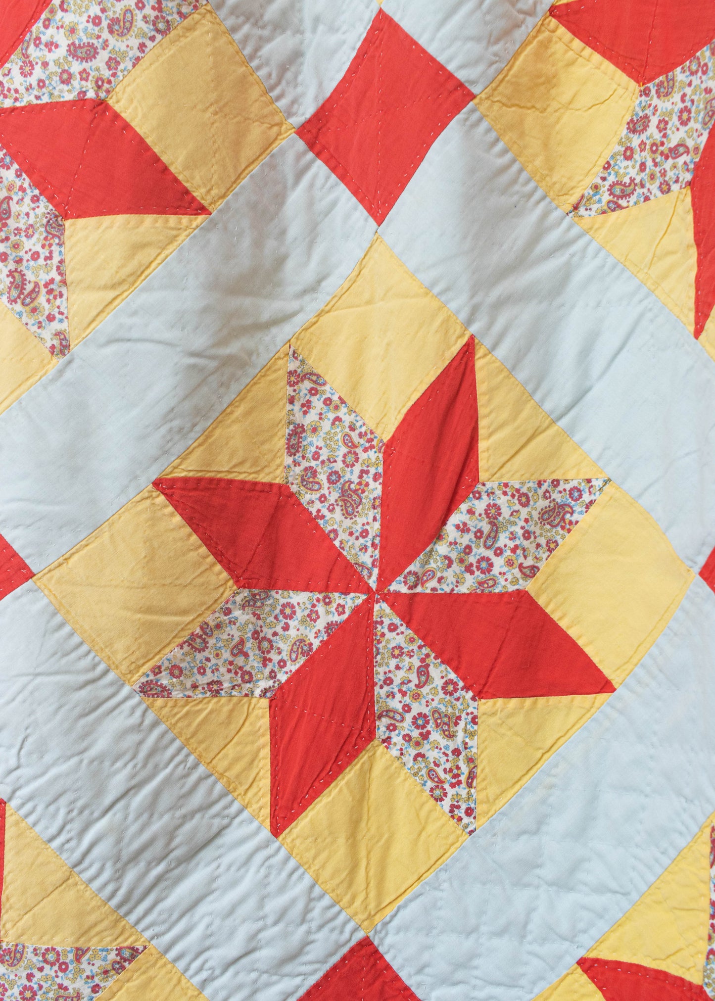 Vintage Patchwork Eight Point Star Geometric Pattern Quilt Blanket Size Queen