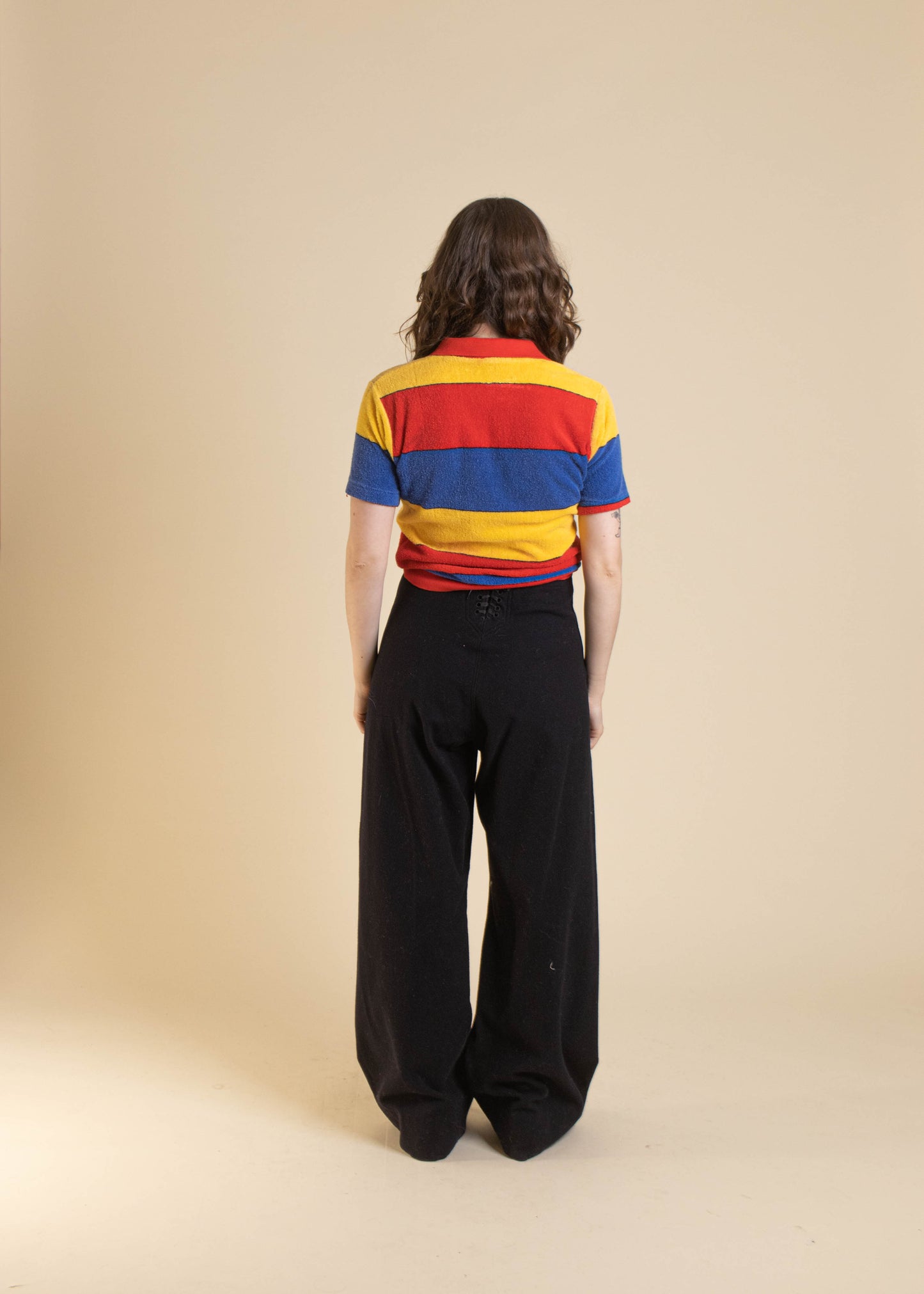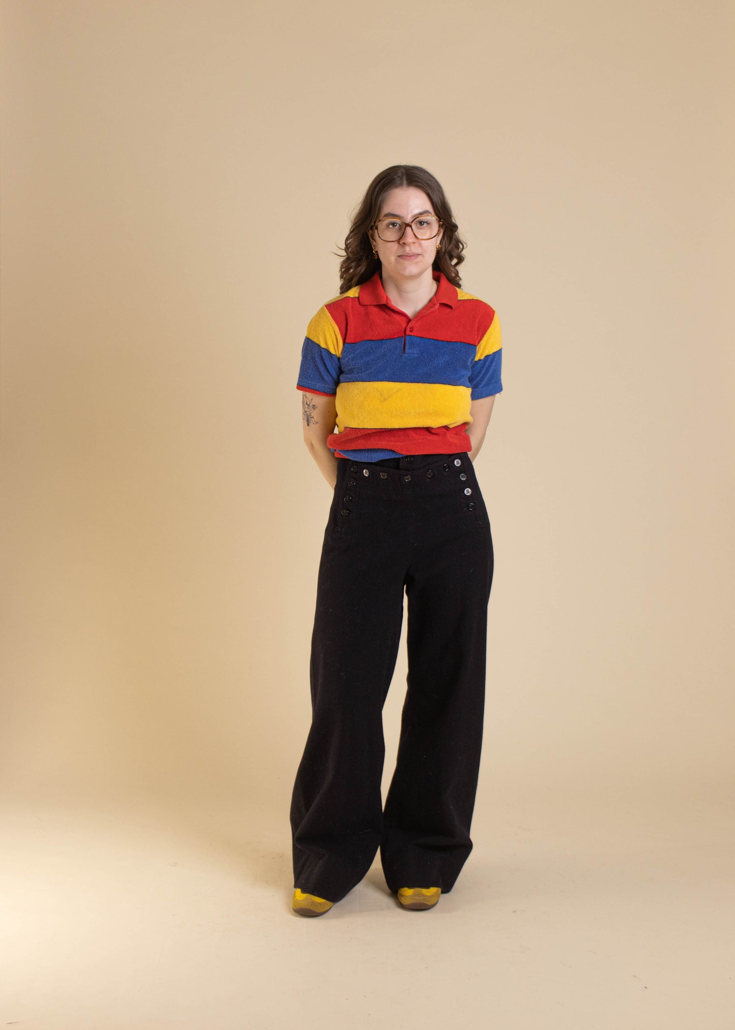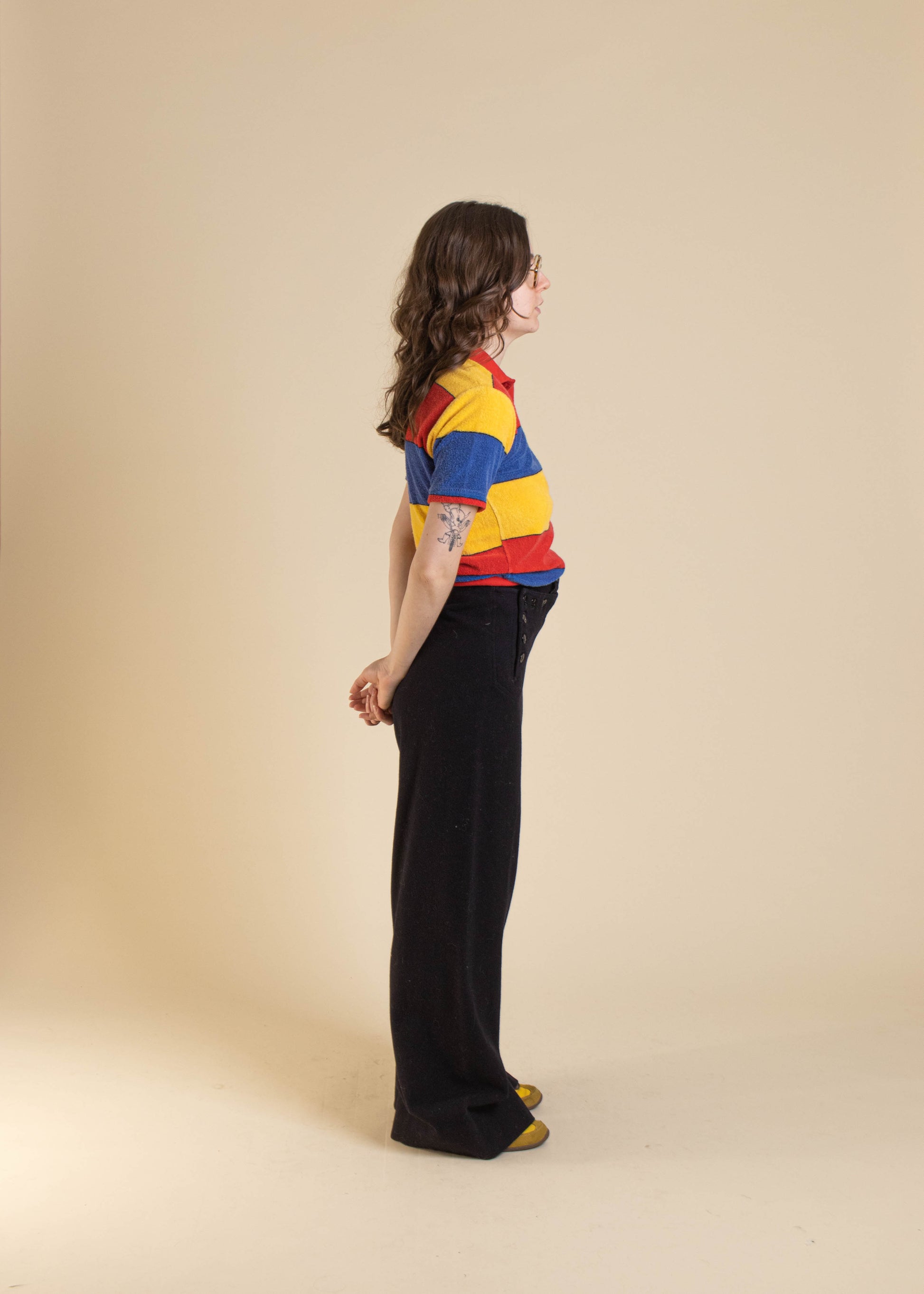 Fred is 5'2" and typically wears a modern Women's 25 waist.