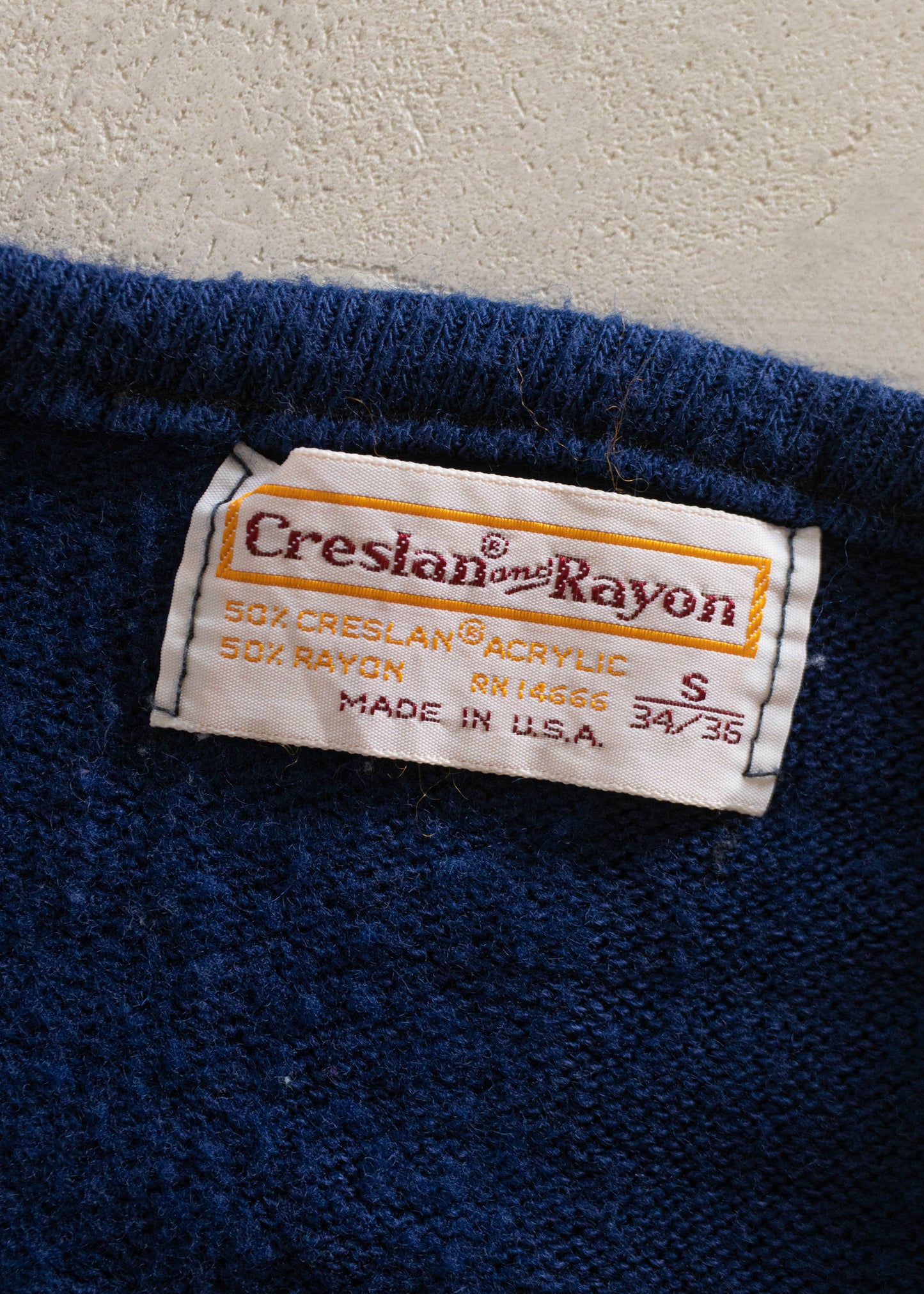 50% Acrylic / 50% Rayon. Made in USA. Creslan and Rayon brand.