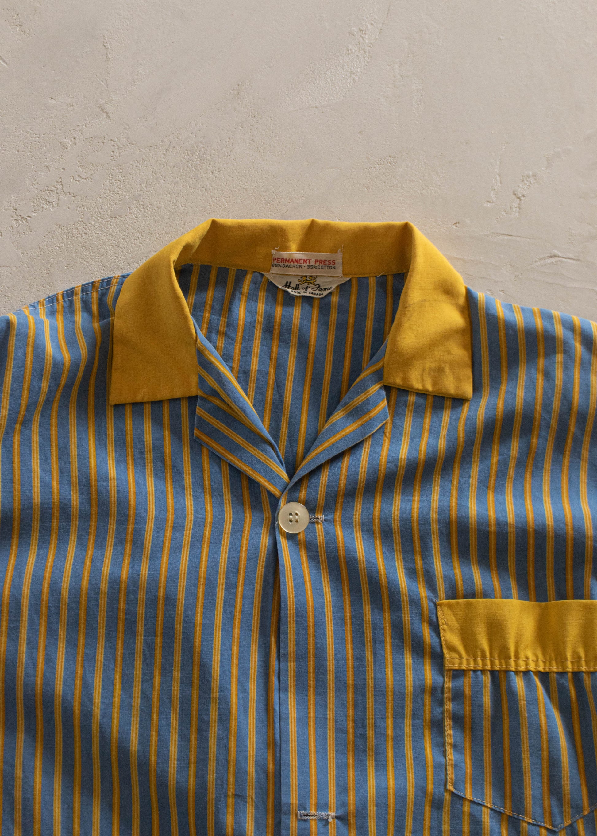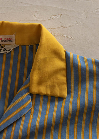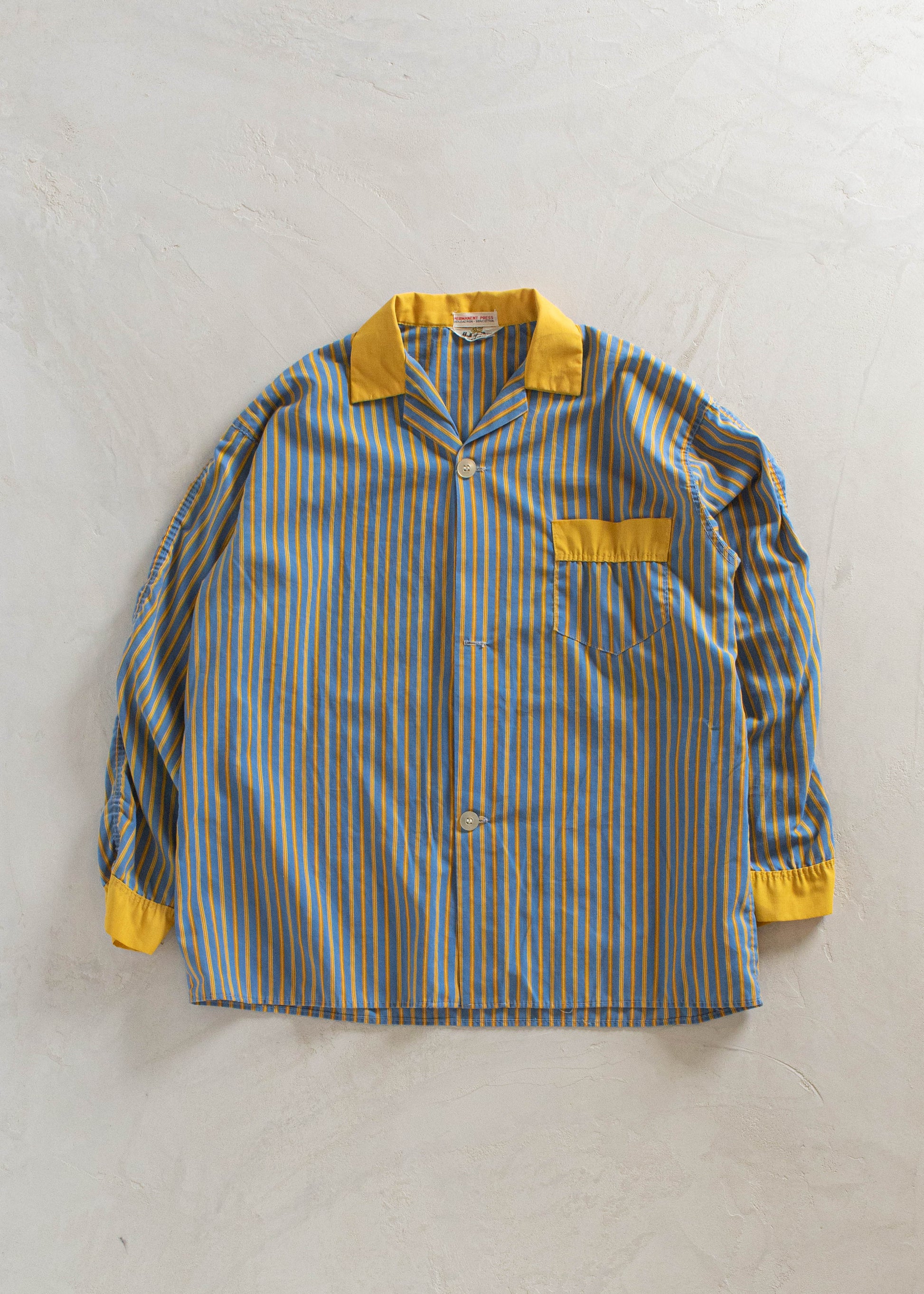 1960s Hall of Fame Stripe Pattern Long Sleeve Button Up Pajama Shirt Size XL/2XL
