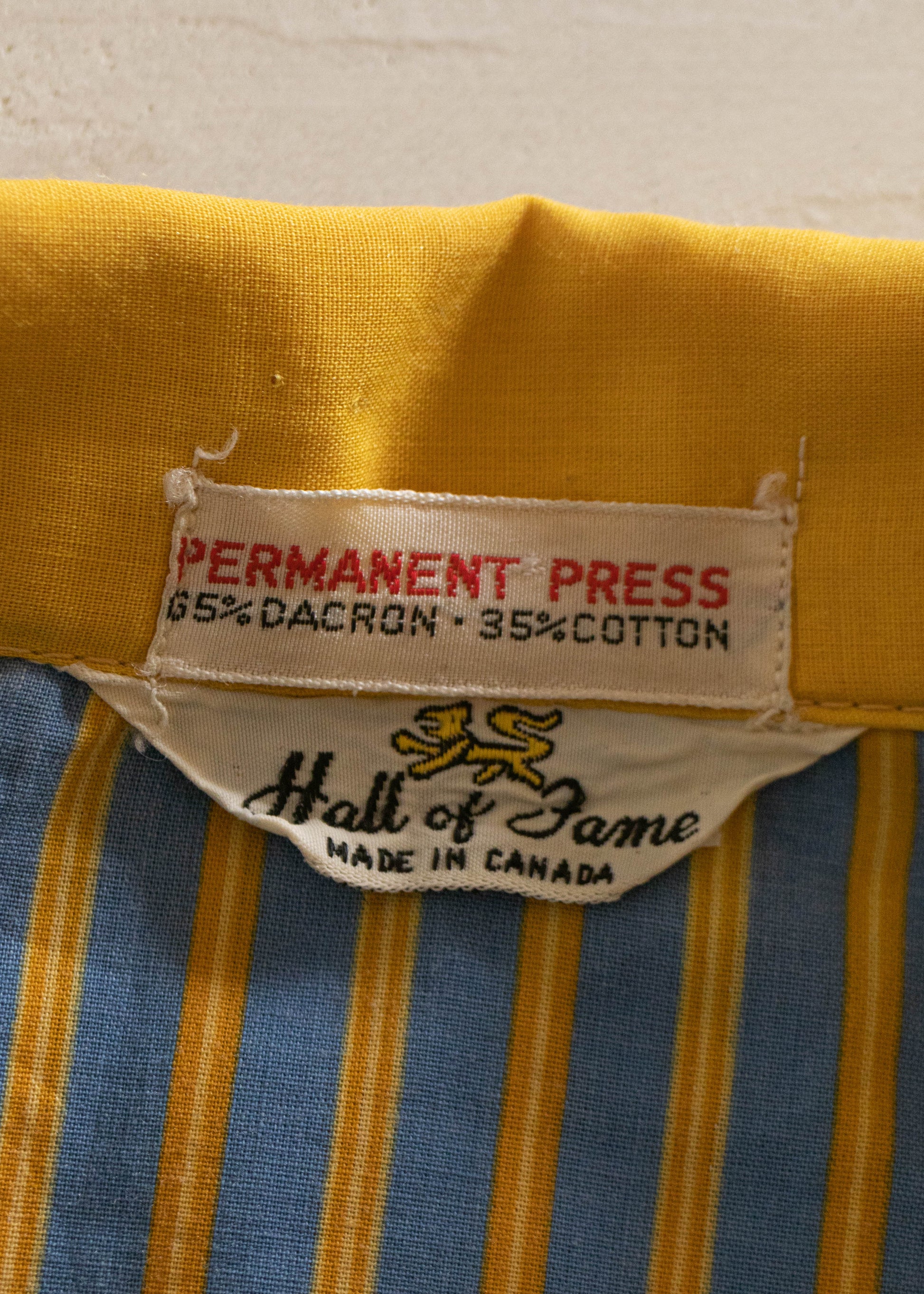 65% Dacron, 35% Cotton. Made in Canada. Hall of Fame brand.