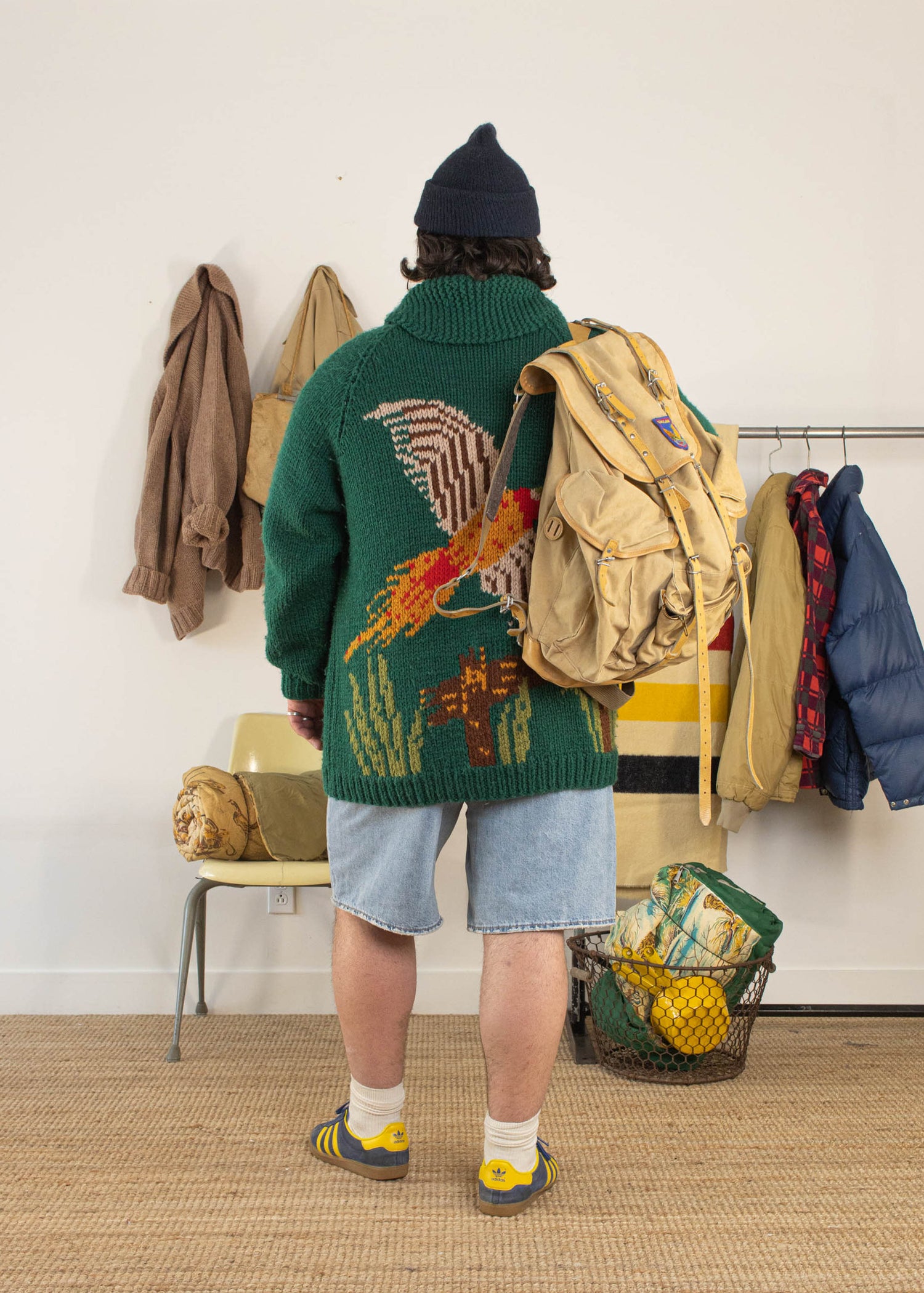 Worn vintage condition. Faded, stains, holes, loose threads. Wear as pictured. This item is vintage and shows signs of previous wear.