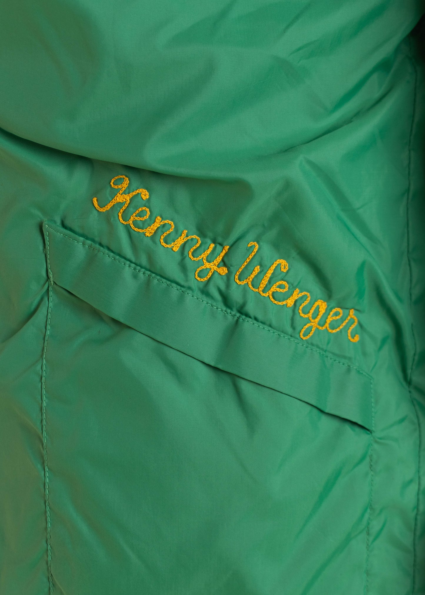 100% Nylon Shell 100% Cotton Lining. Made in USA. Hilton brand.