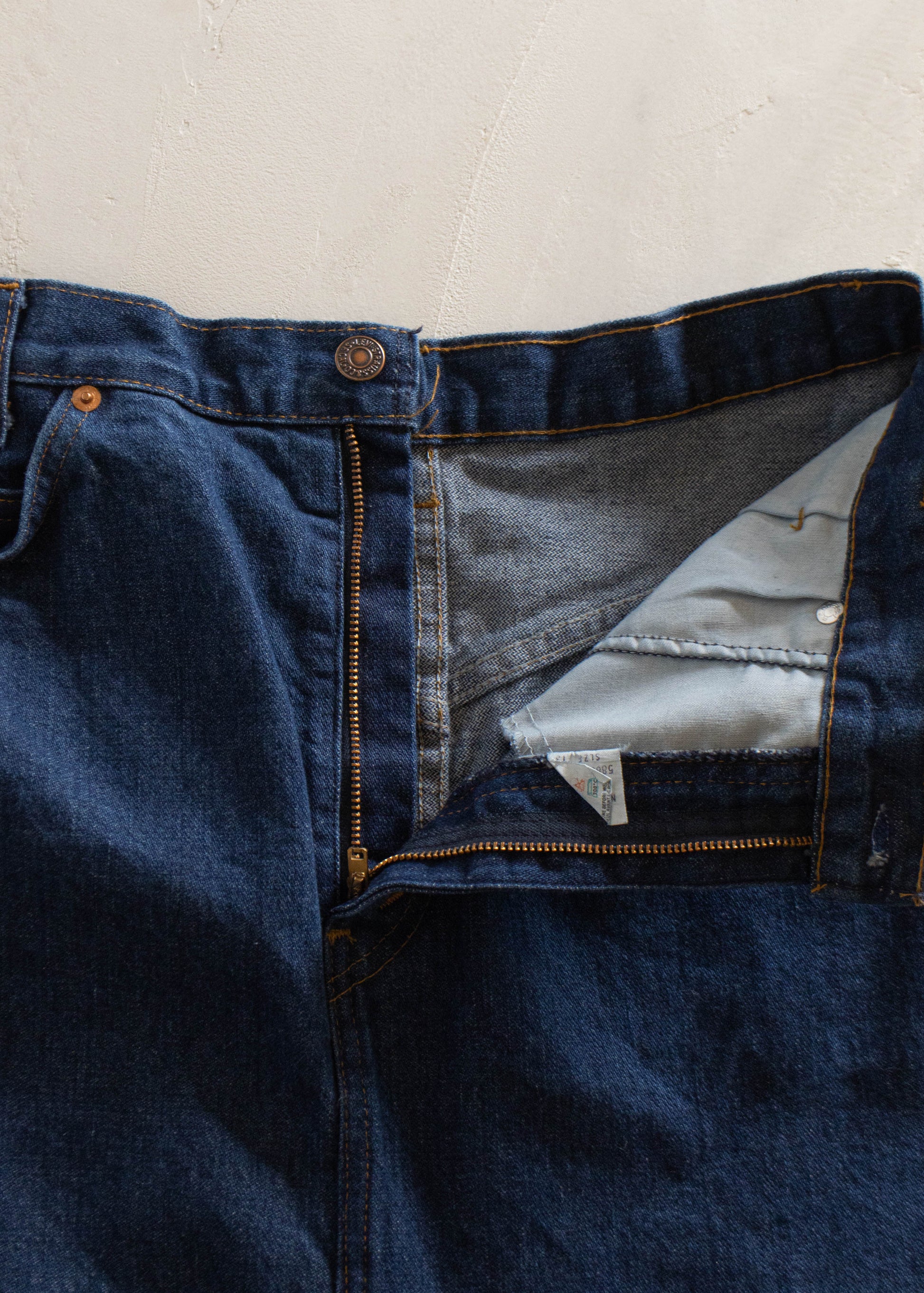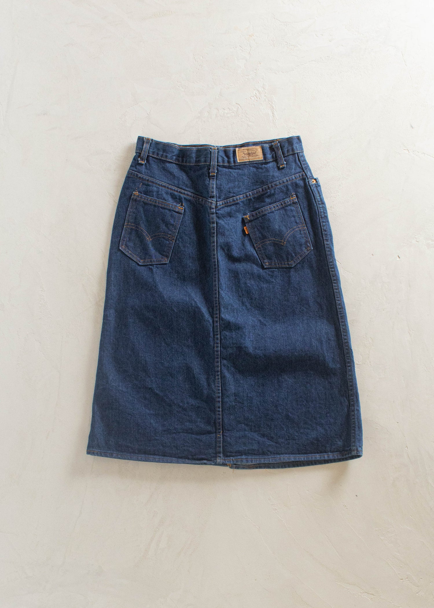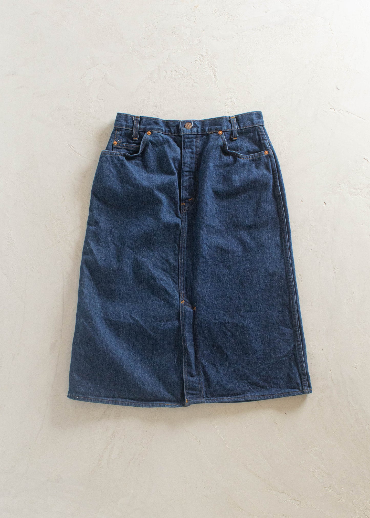 1970s Levi's Orange Tab Denim Midi Skirt Size Women's 28 Men's 31