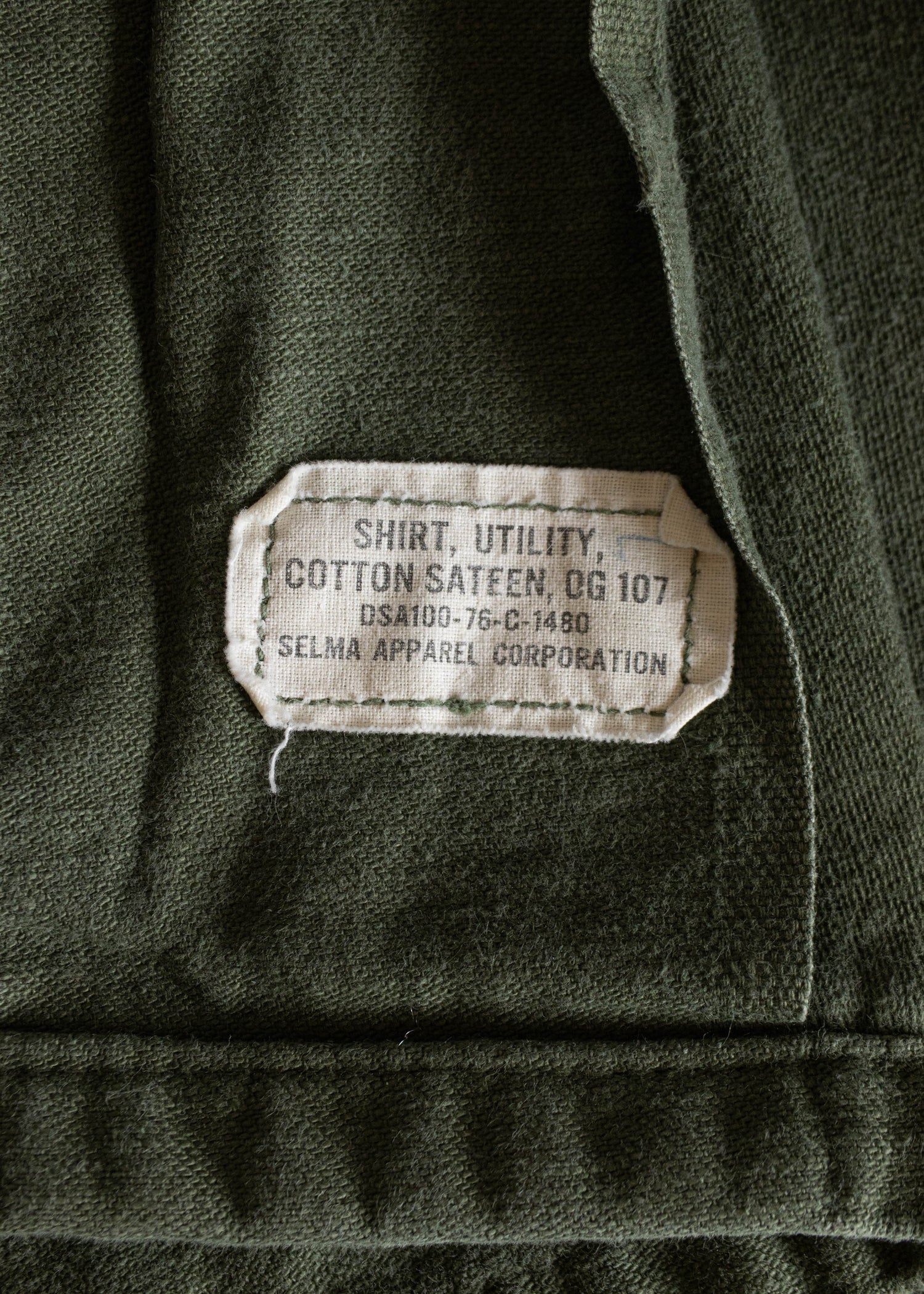 100% Cotton twill. Military issue.