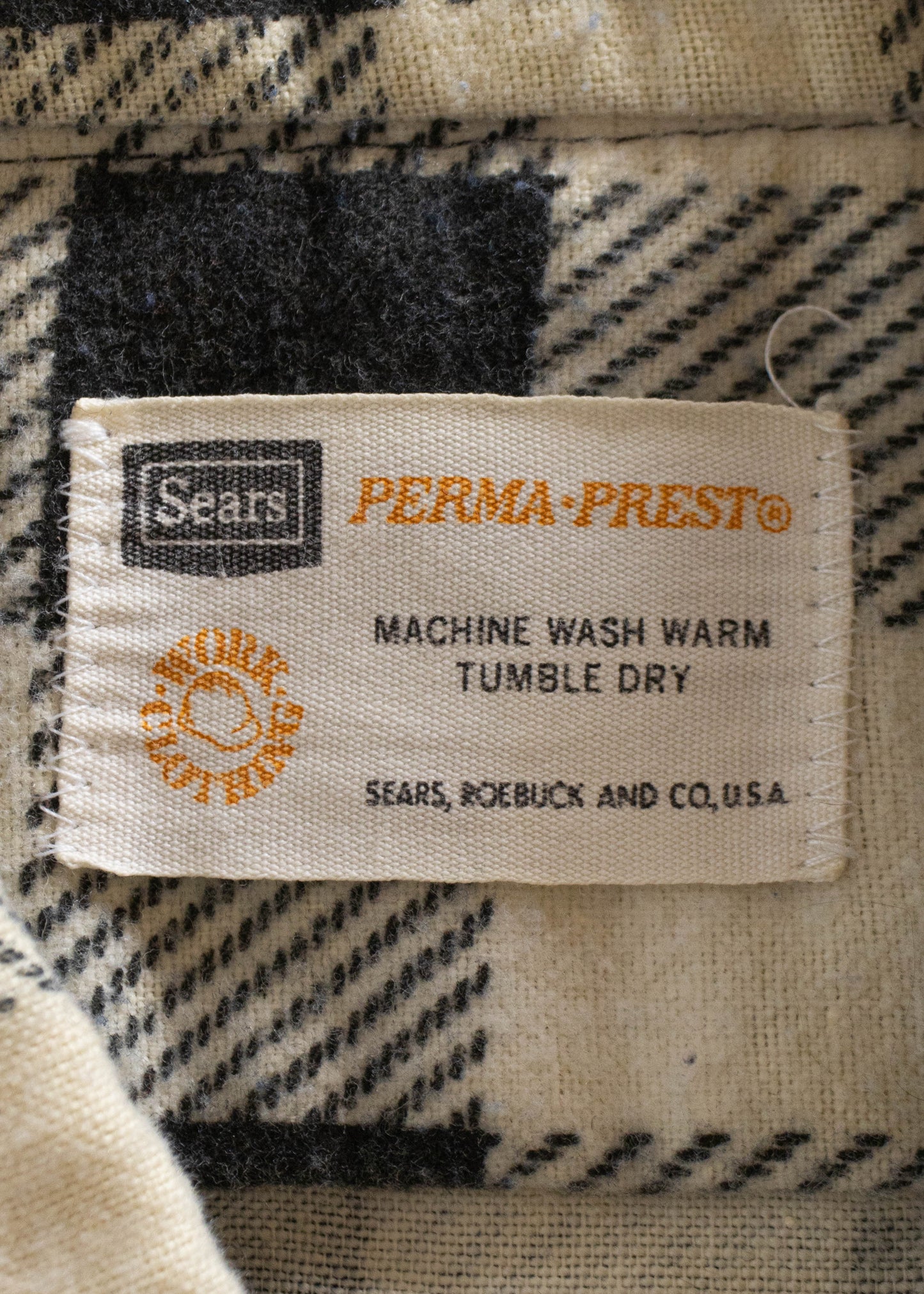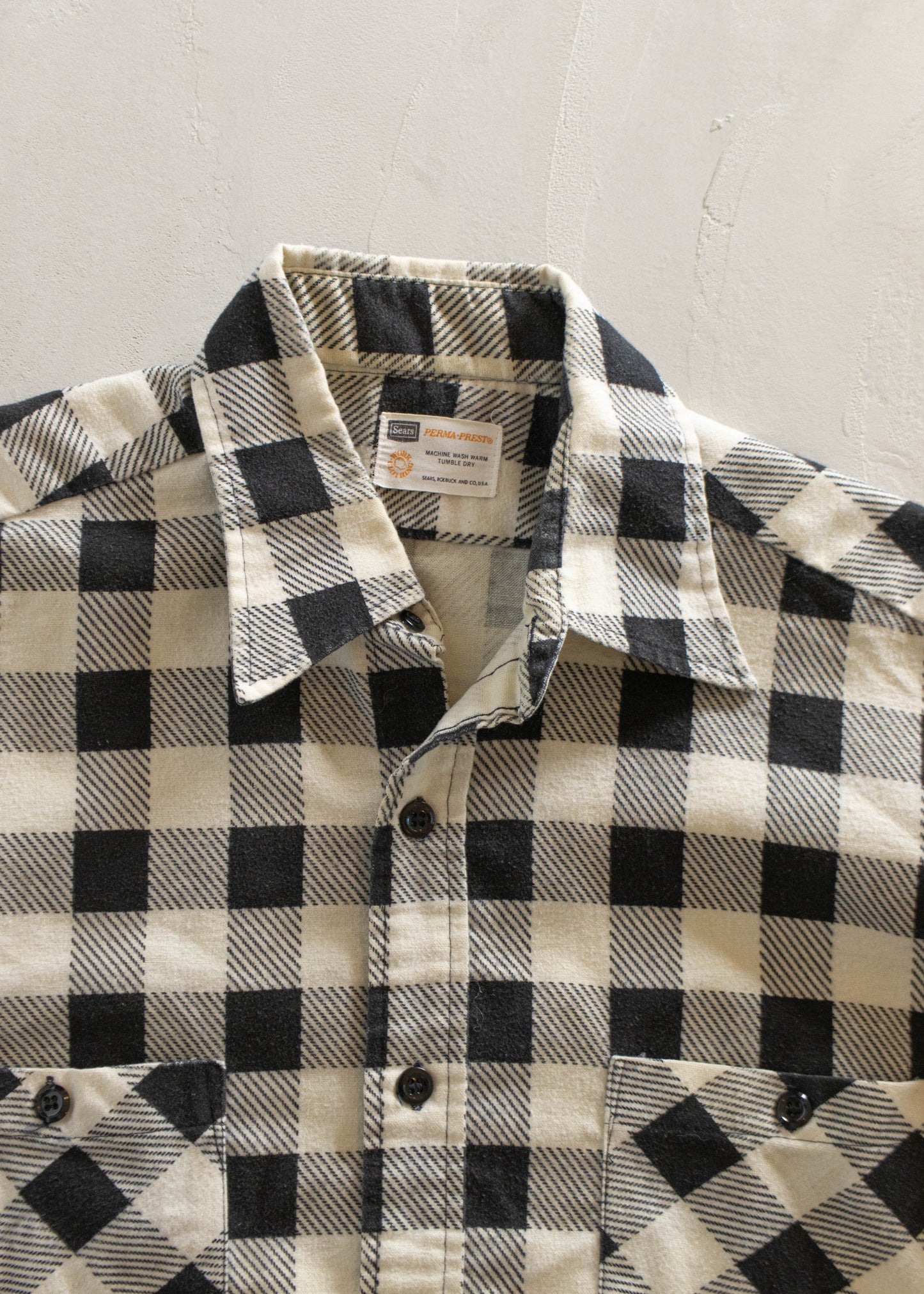 1970s Sears Perma-Prest Cotton Flannel Button Up Shirt Size M/L
