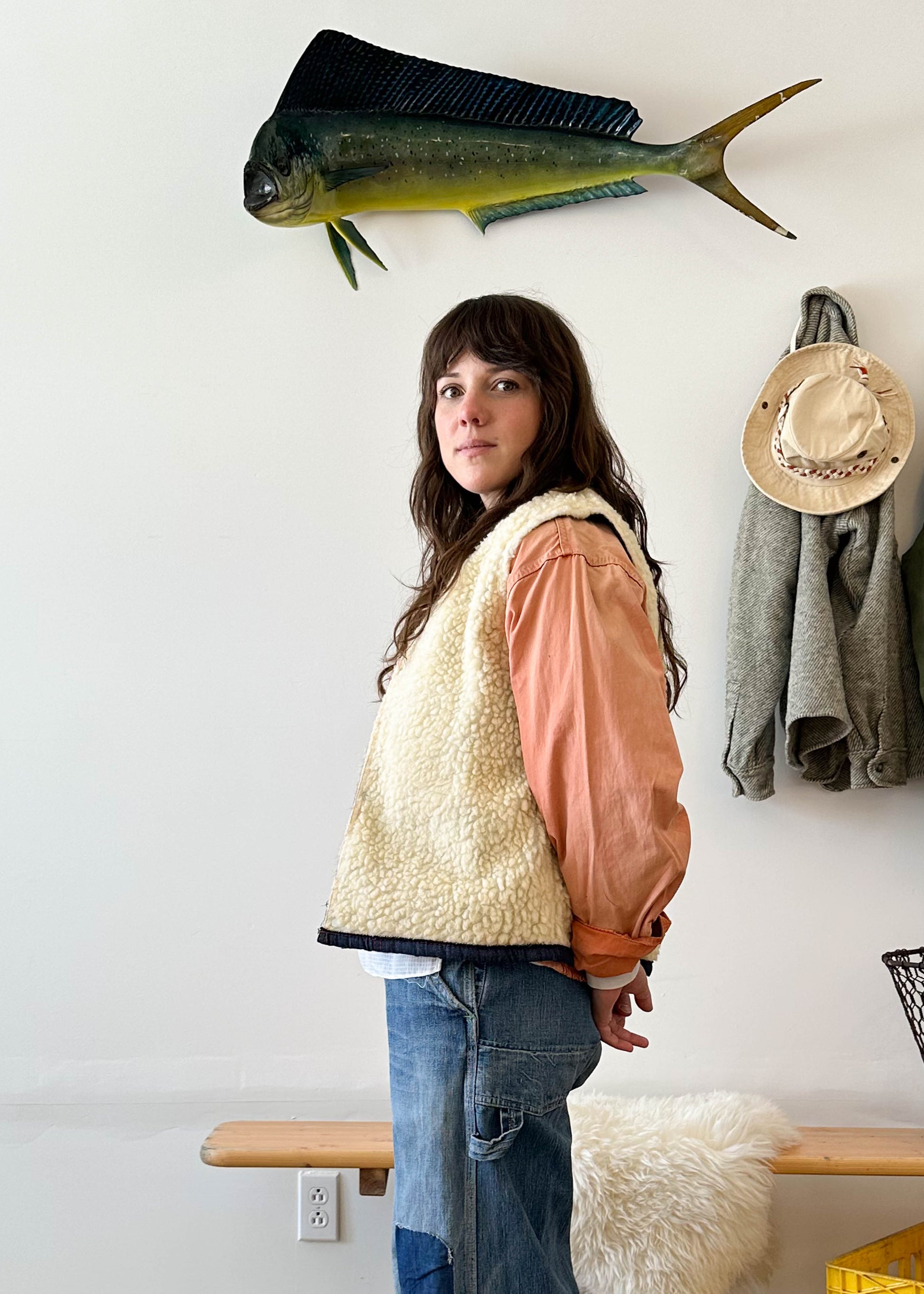 1970s Sherpa Lined Denim Vest Size S/M