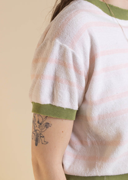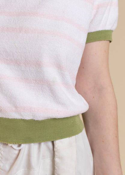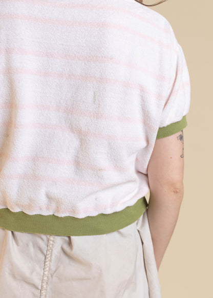 1970s Terry Cloth Stripe Pattern Short Sleeve Shirt Size S/M