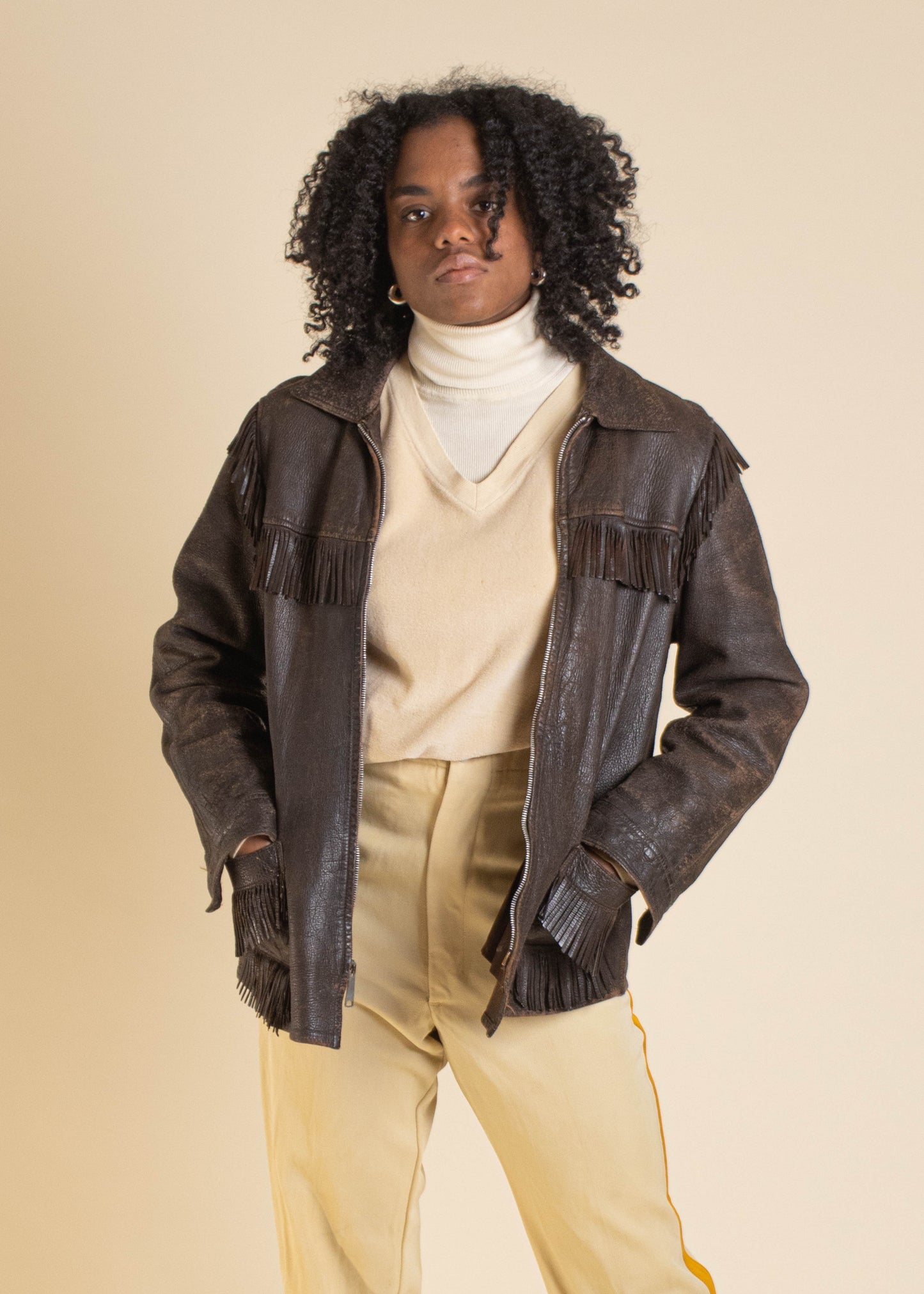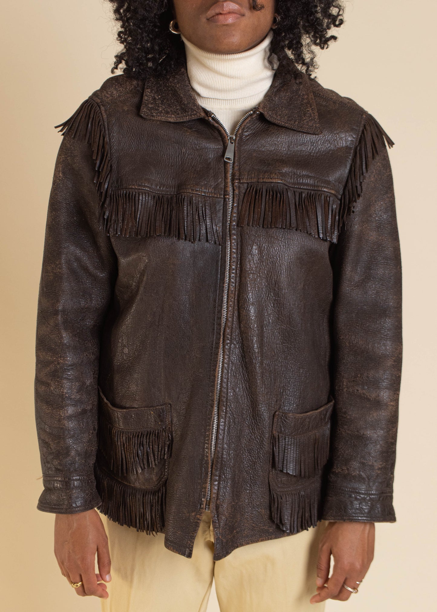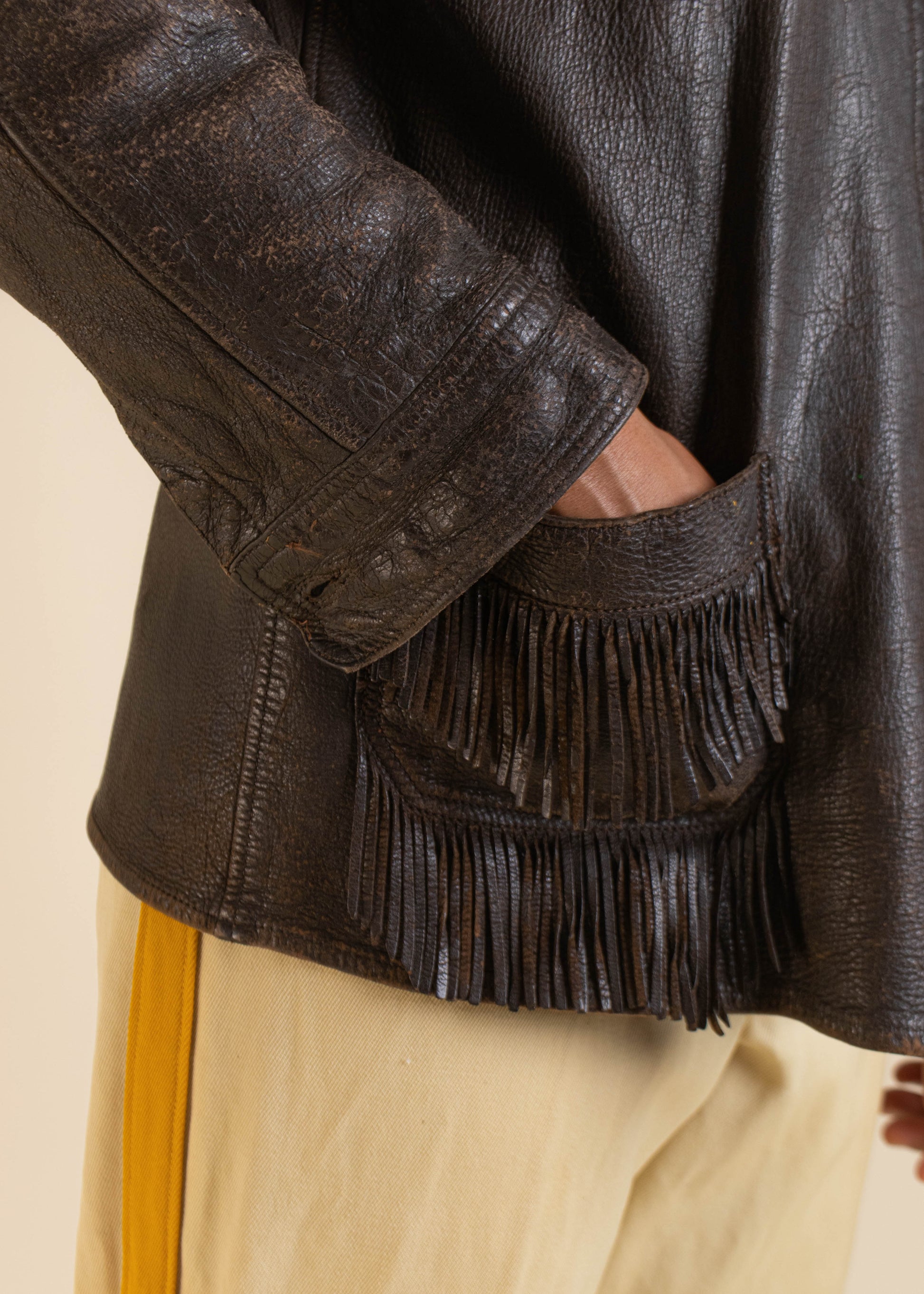 1970s W.B Place & Co Fringe Leather Jacket Size XS/S