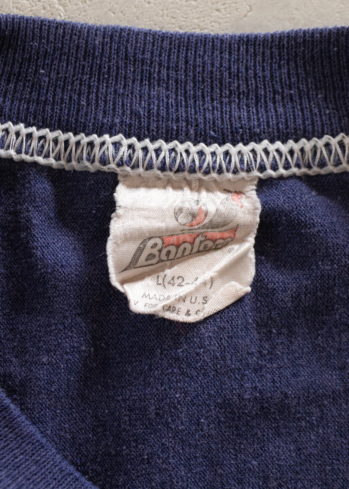50% Cotton / 50% Polyester. Single Stitch. Made in USA. Bantam brand.
