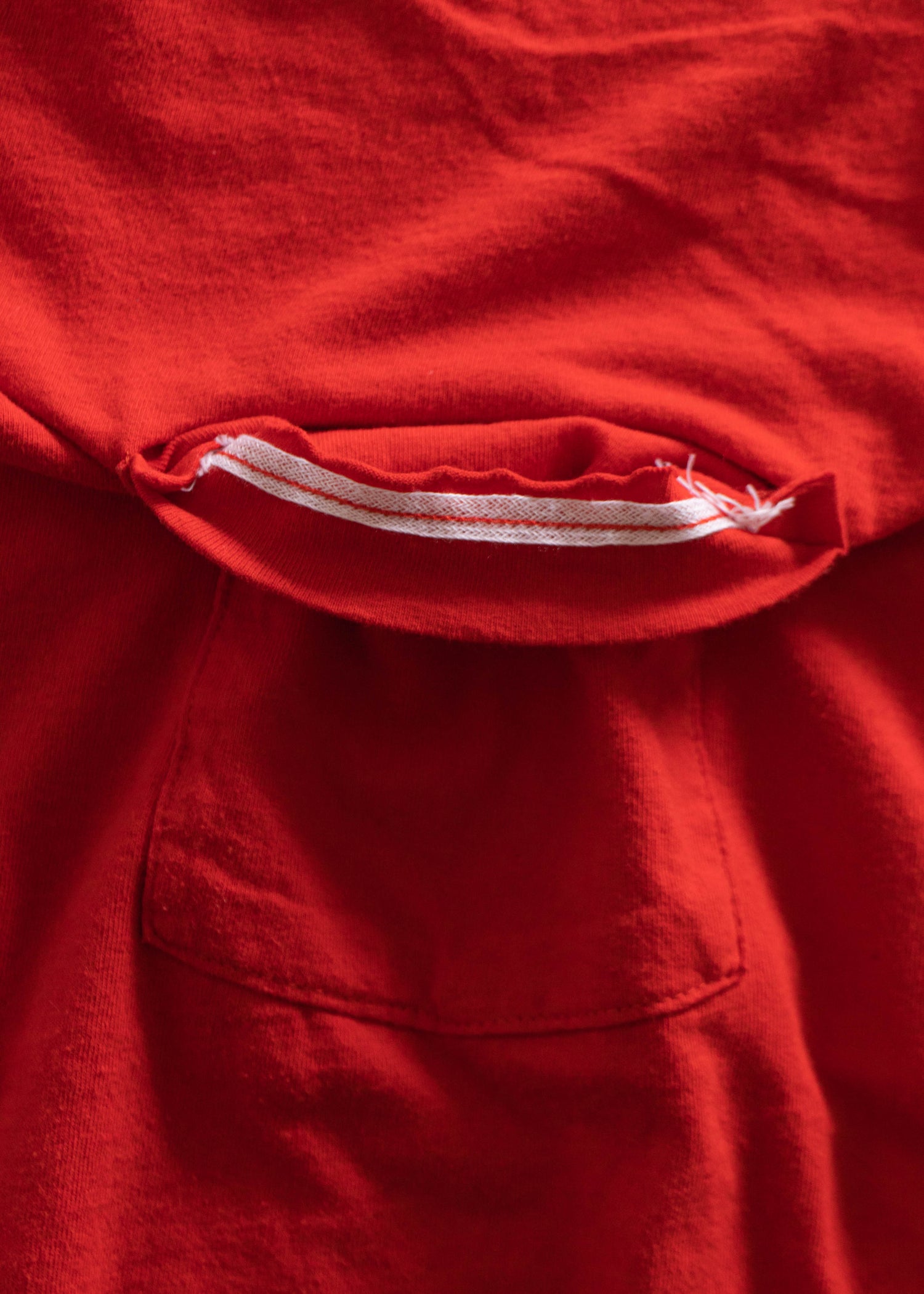 100% Cotton. Made in USA. Selvedge Pocket. Single Stitch. Fruit of the Loom brand.