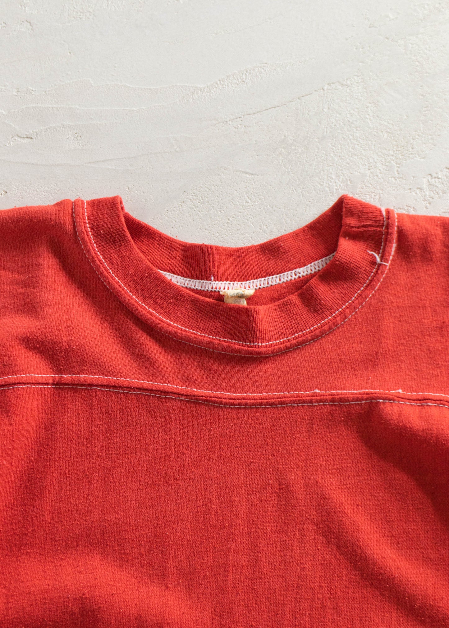 50% Cotton / 50% Polyester. Single Stitch. Made in USA. Sportswear brand.