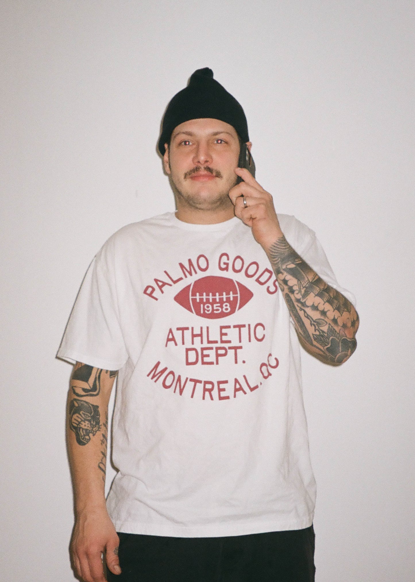 Inspired by our favorite vintage athletic wear from the 1950s and 1960s, the Palmo Goods Athletic Department t-shirts are designed in house and screen printed in Montreal, Quebec.