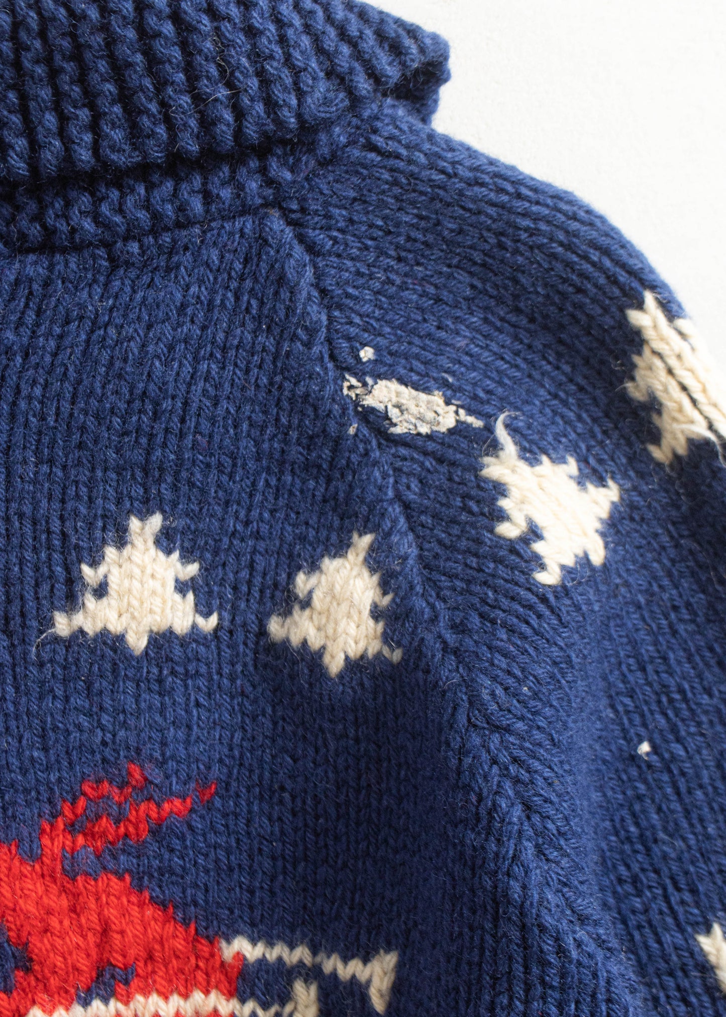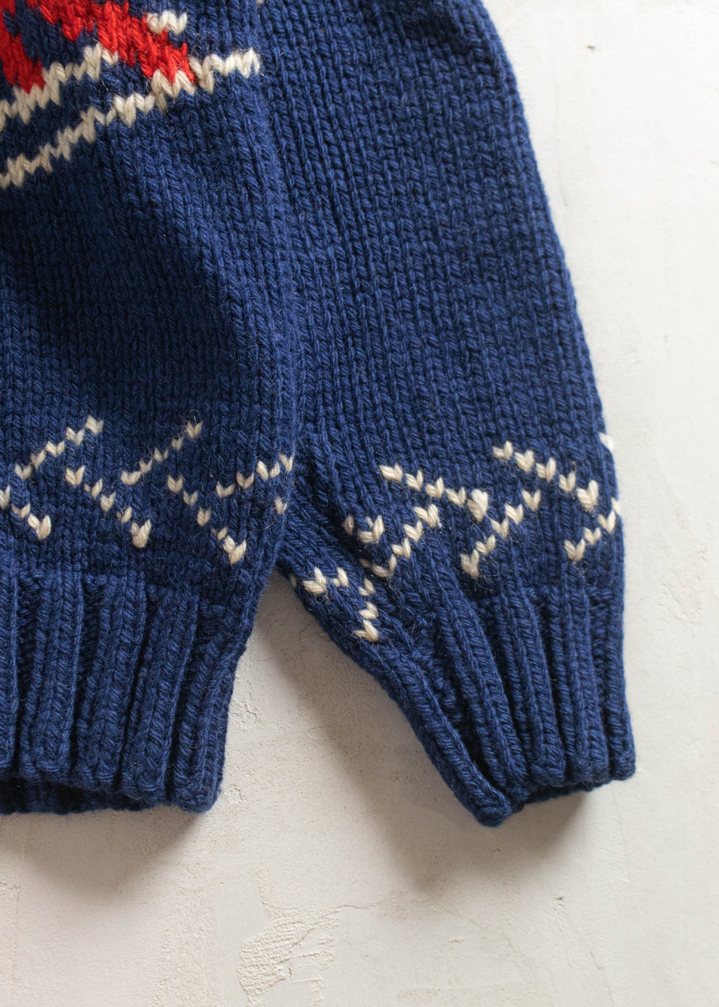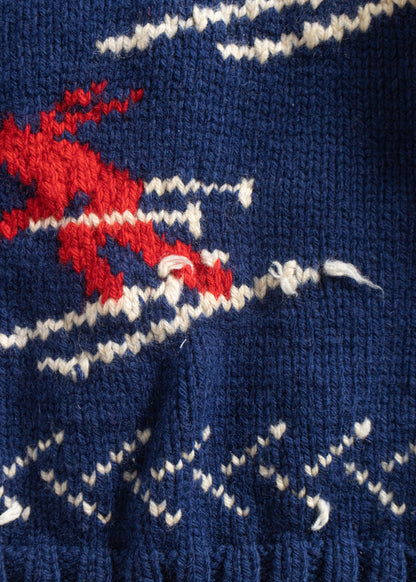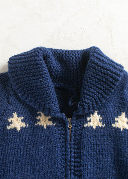Vintage 1970s Skier Pattern Cowichan Style Wool Cardigan Size M/L