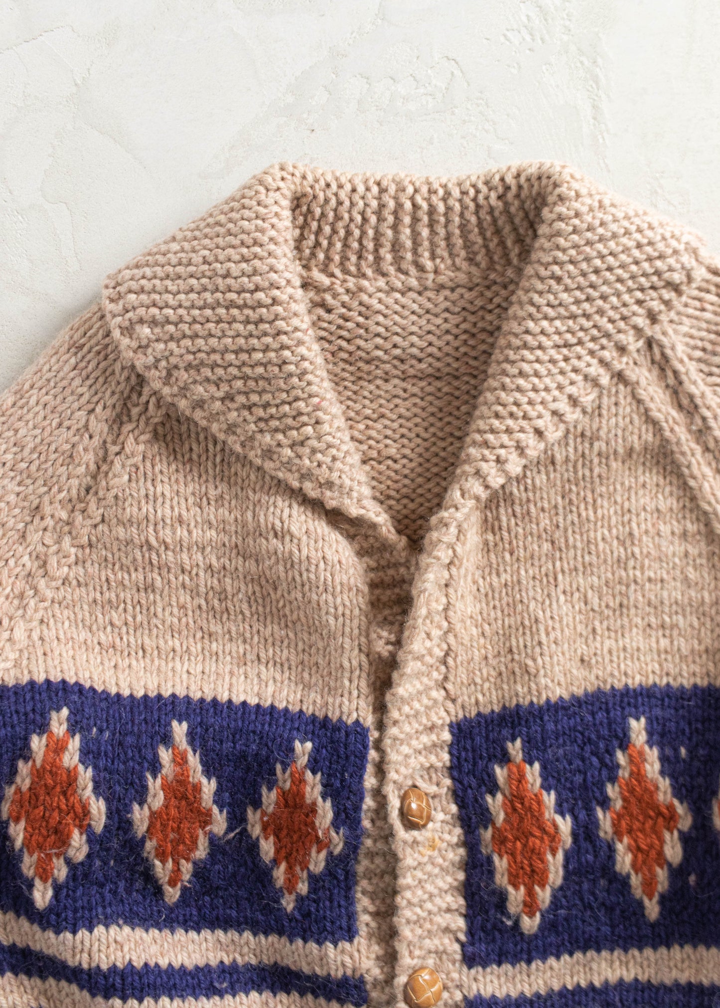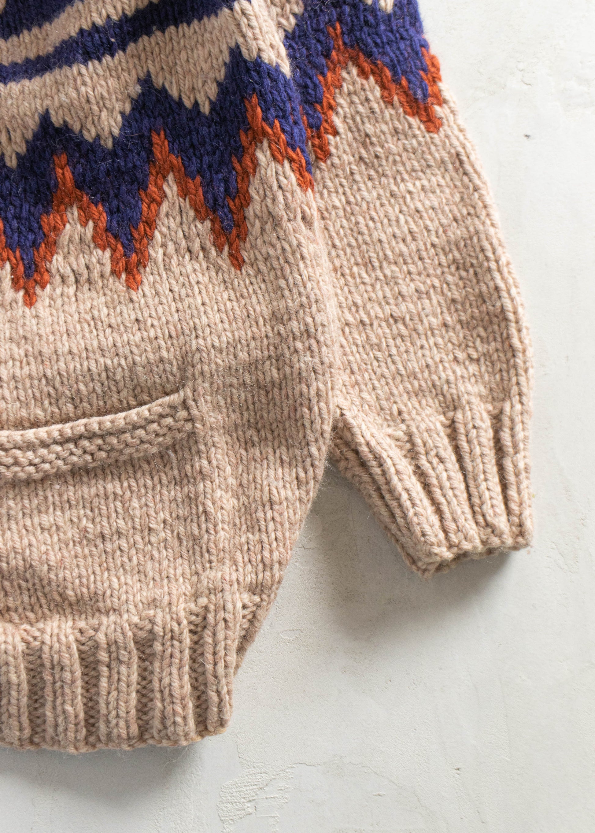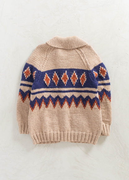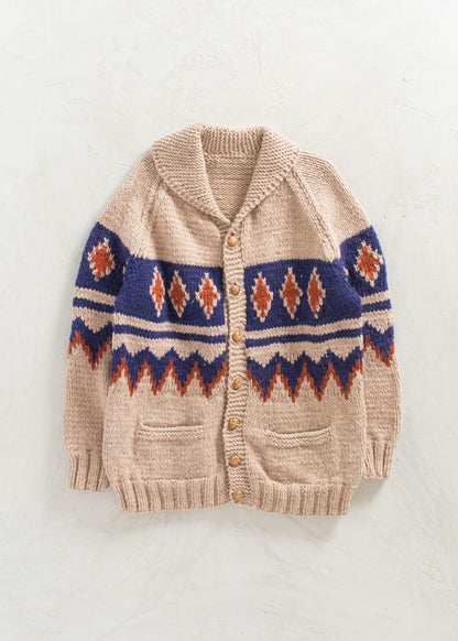 Vintage 1980s Geometric Pattern Cowichan Style Wool Cardigan Size M/L