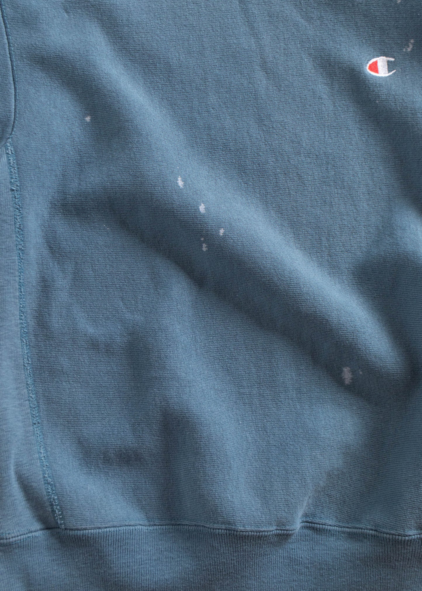 90% Cotton / 10% Acrylic. Champion brand. Made in USA.