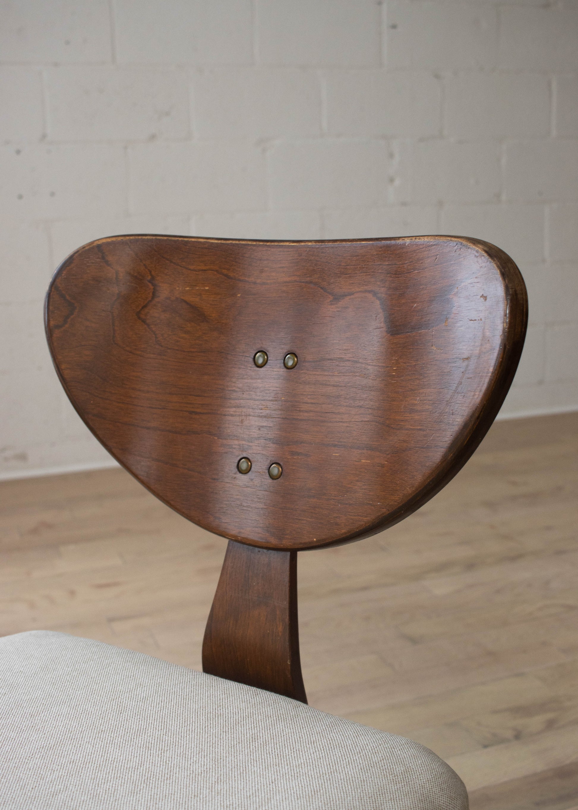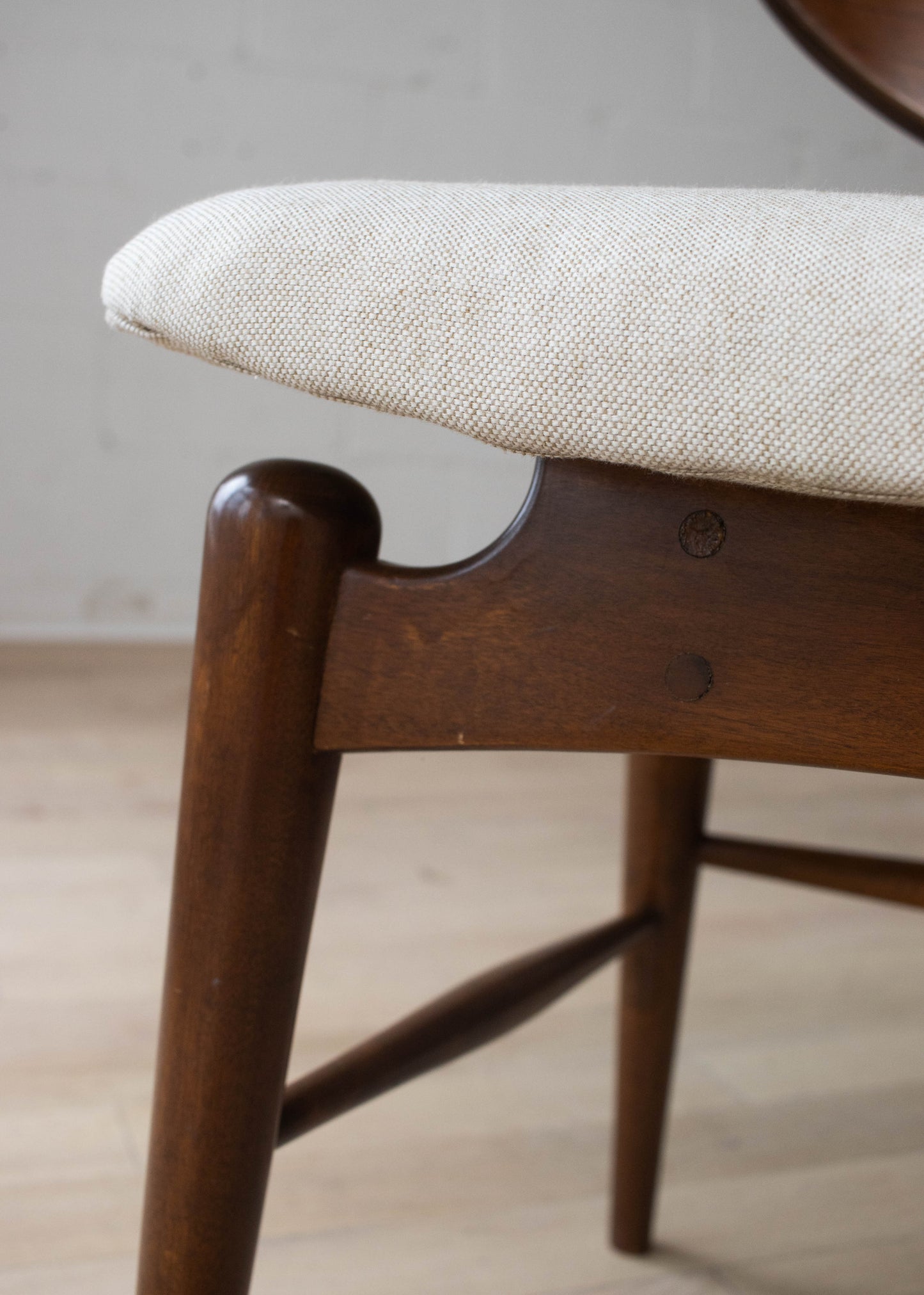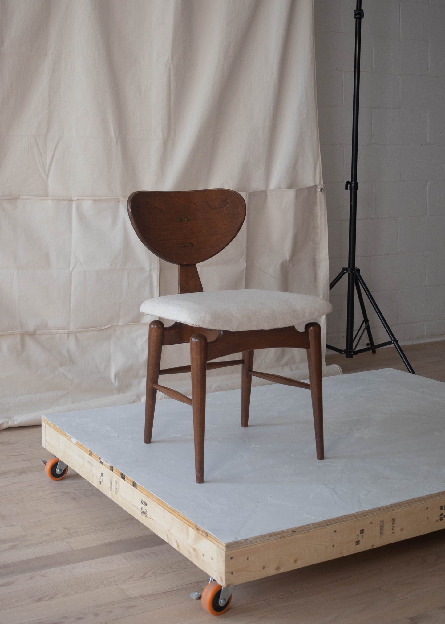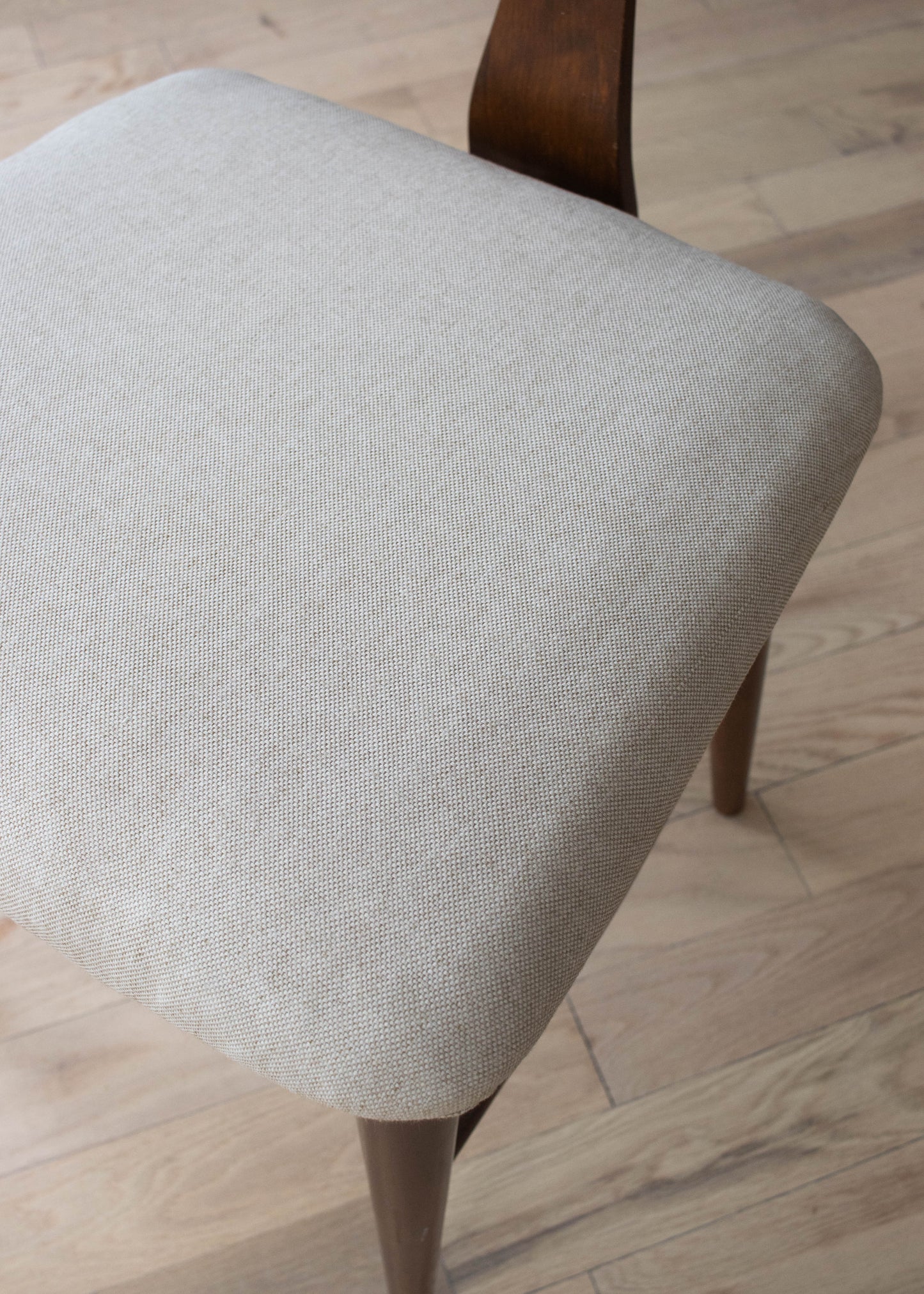 Wood frame. Freshly reupholstered seat.
