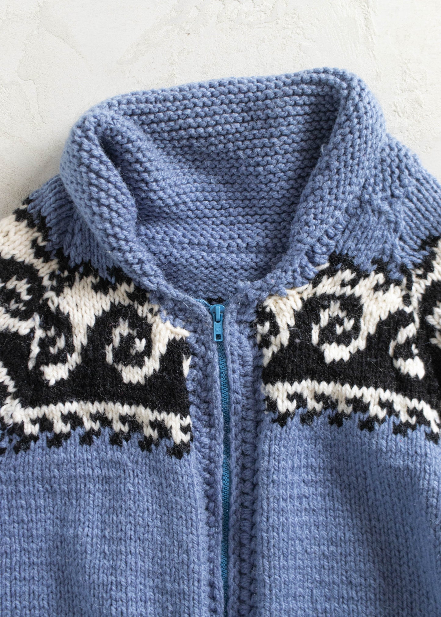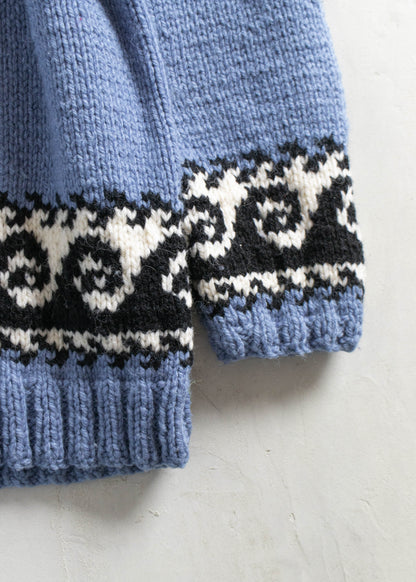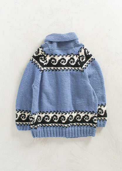 Vintage Wave Pattern Cowichan Style Wool Cardigan Size M/L